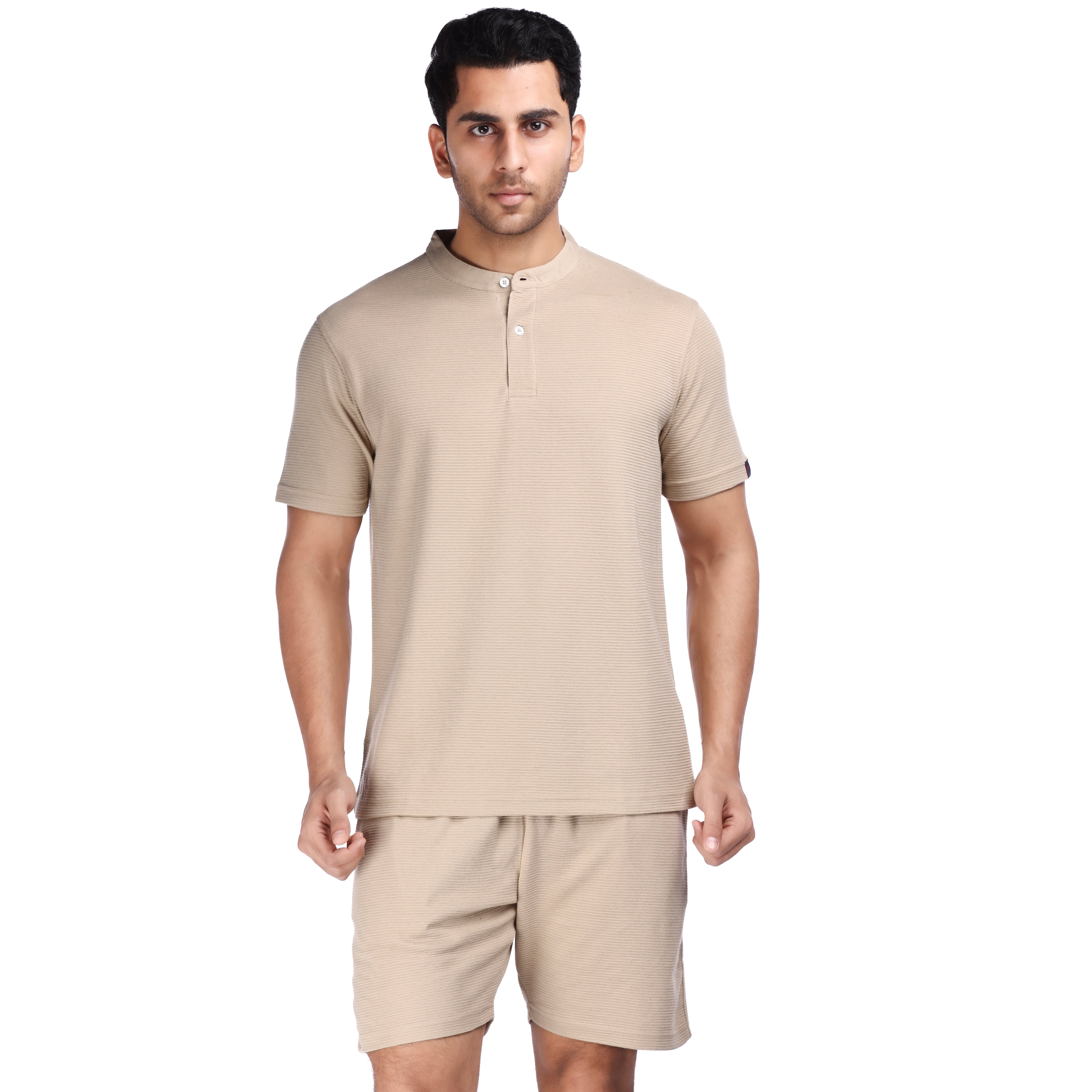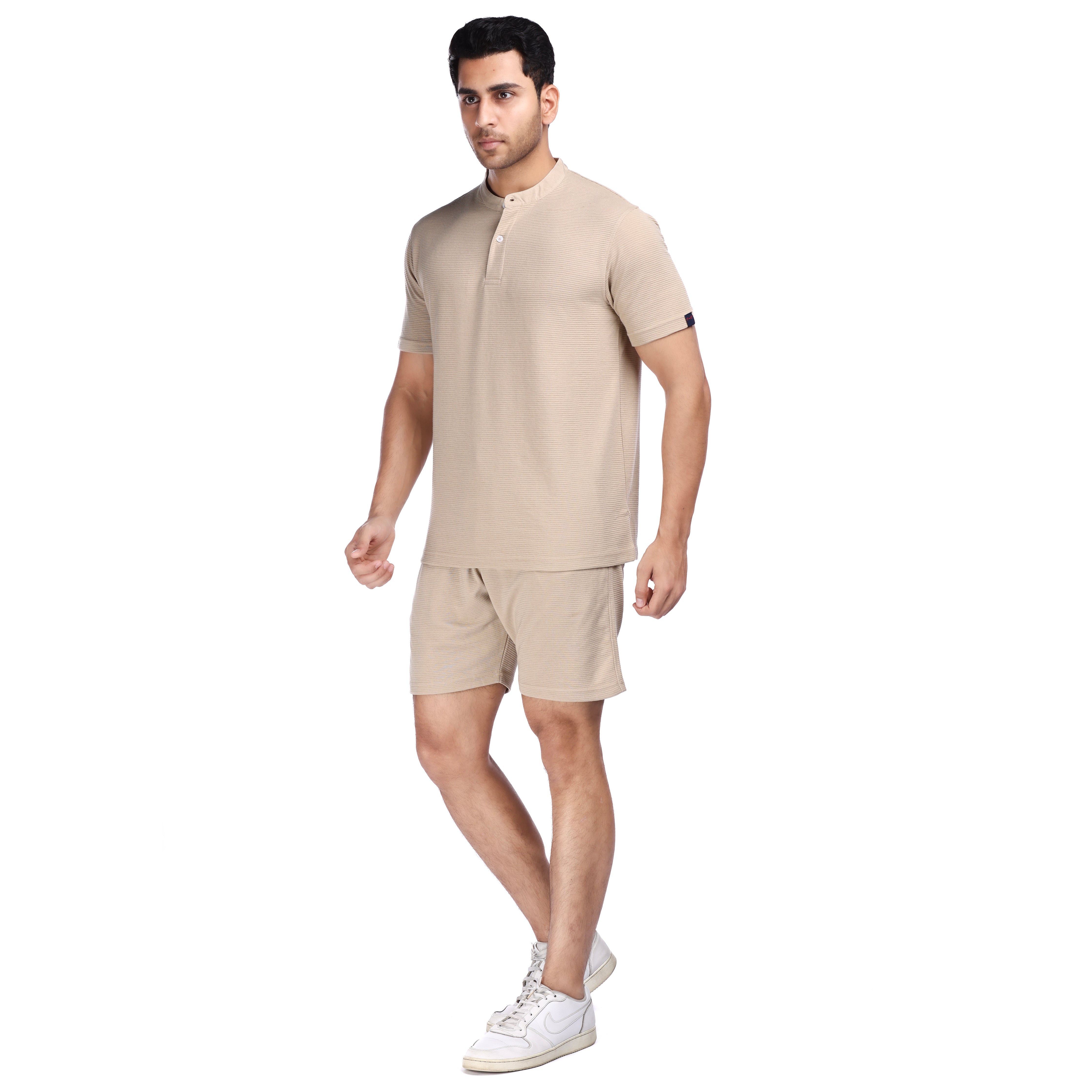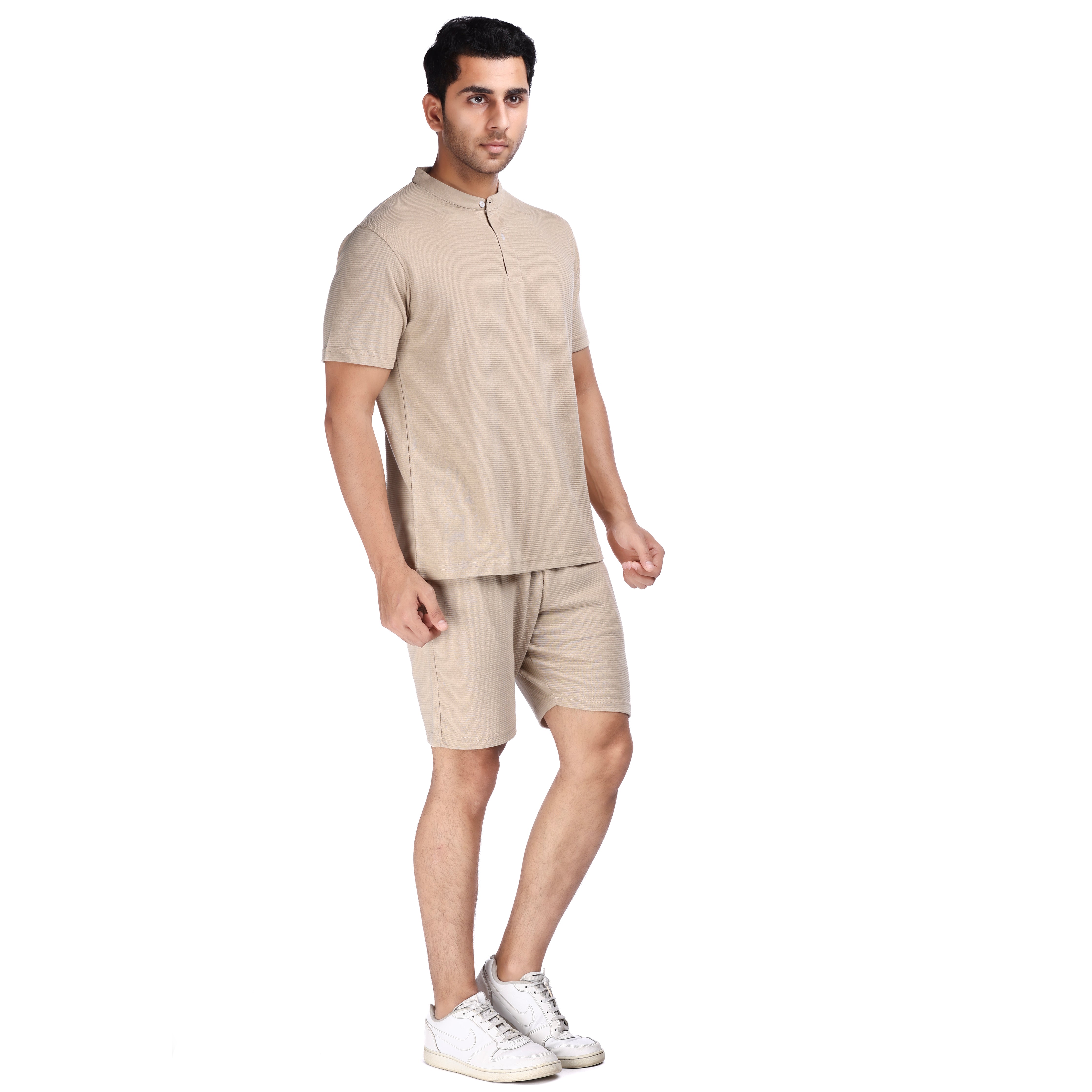 This Structured Co-Ord Set in Beige combines a regular fit with a cotton-dominated, structured fabric ideal for daily wear. Featuring short sleeves and shorts, it offers breathable comfort and ease of movement, making it perfect for casual outdoor activities. The neutral beige tone adds versatility to your wardrobe, ensuring effortless style with practical functionality.
