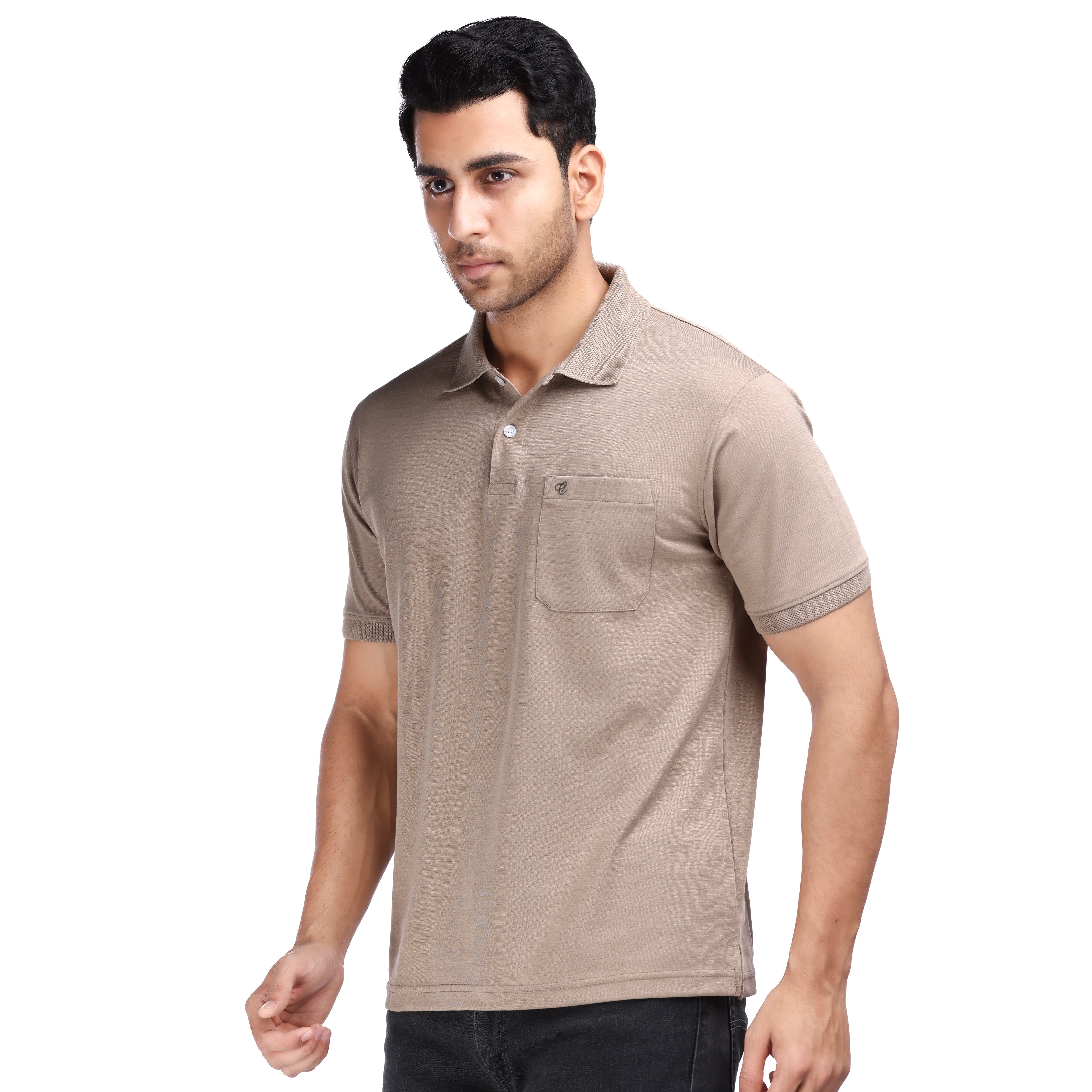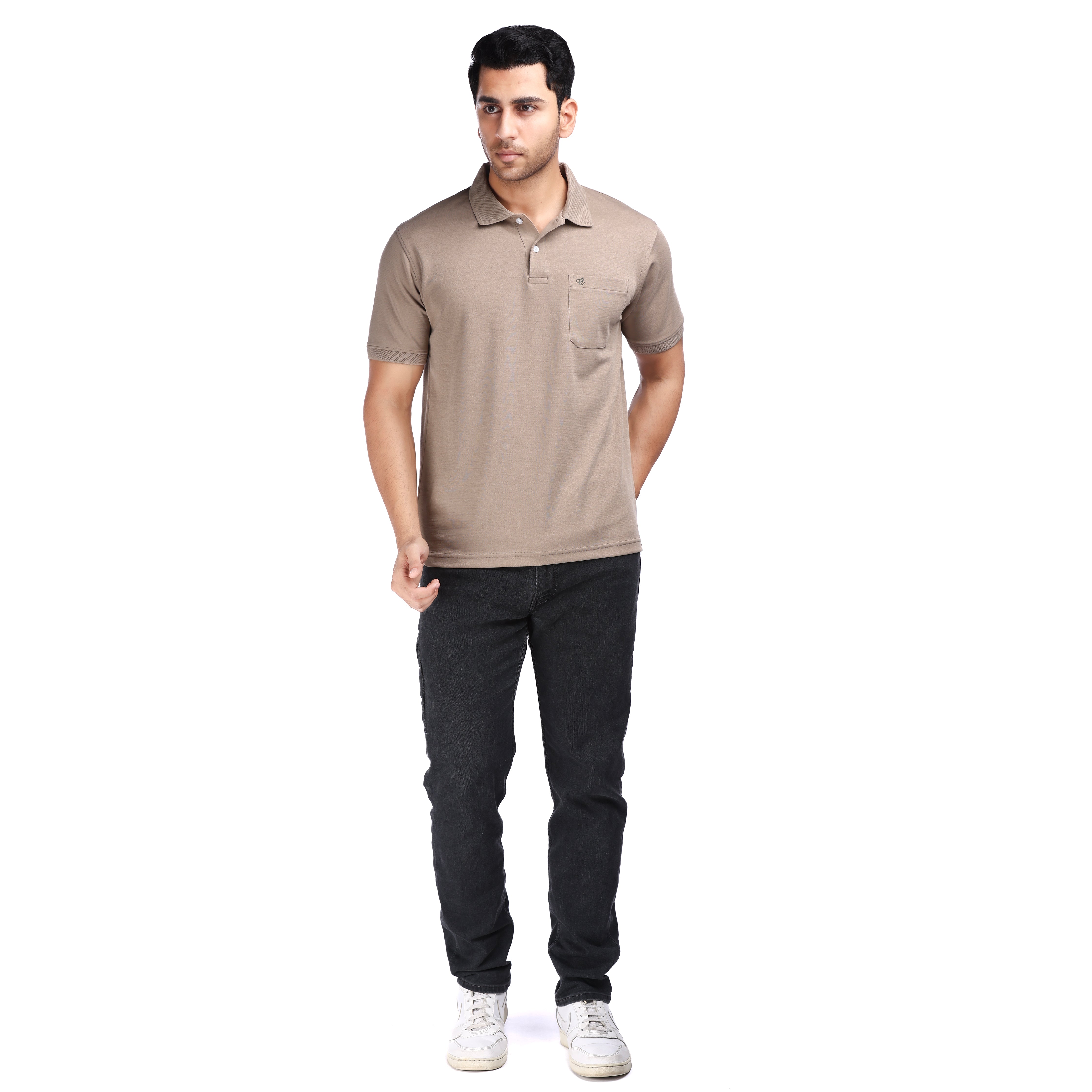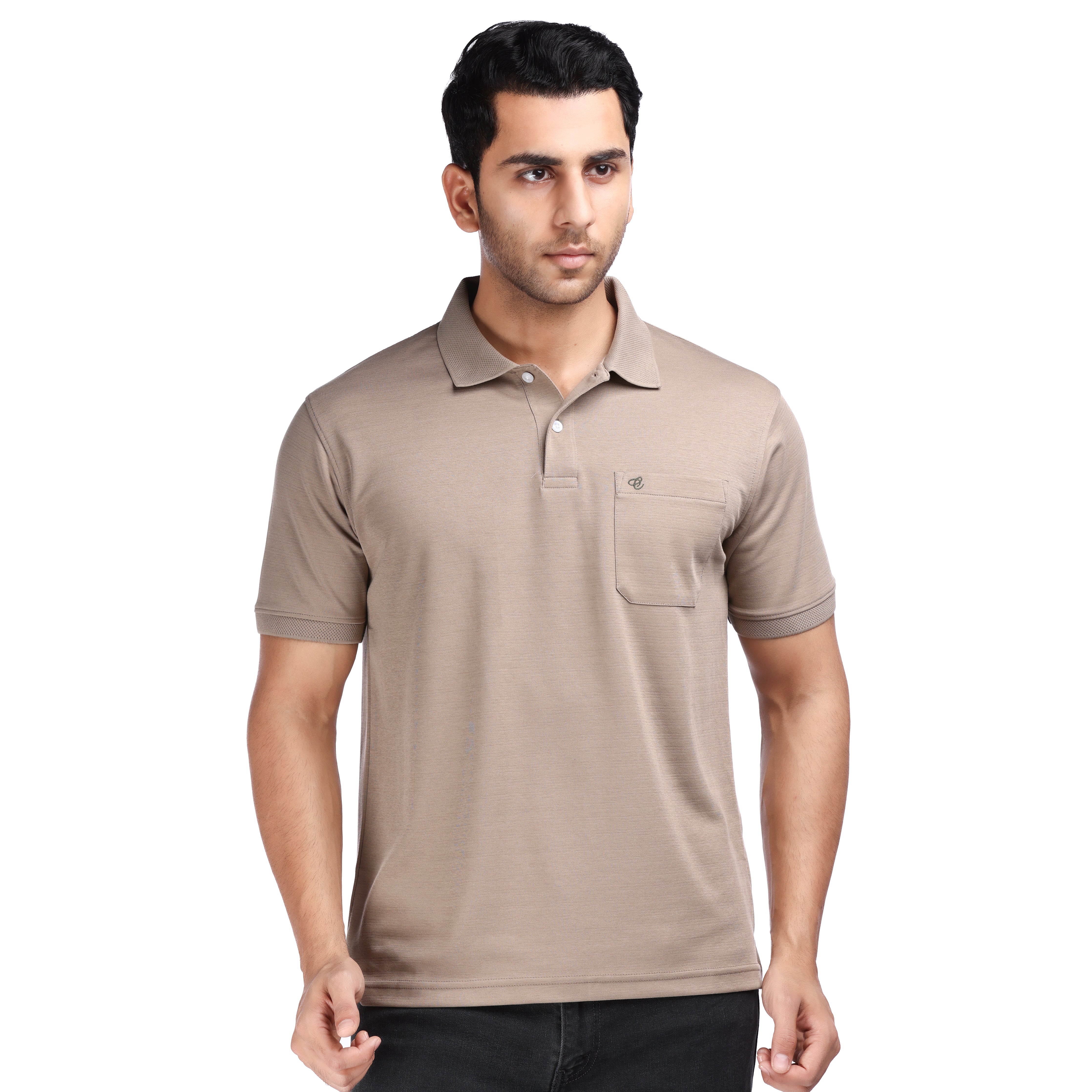 The Designer Beige Polo combines timeless sophistication with everyday versatility. Crafted from cotton-dominated fabric with a structured weave, this piece maintains its shape through regular wear while delivering exceptional comfort. The designer collar and chest pocket detail elevate your casual wardrobe, while the regular fit flatters most body types. Perfect for transitioning seamlessly between office settings and weekend outings, this short-sleeved essential works equally well with tailored trousers or relaxed denim. The neutral beige tone pairs effortlessly with your existing collection, making it a smart investment for men seeking refined, practical style.