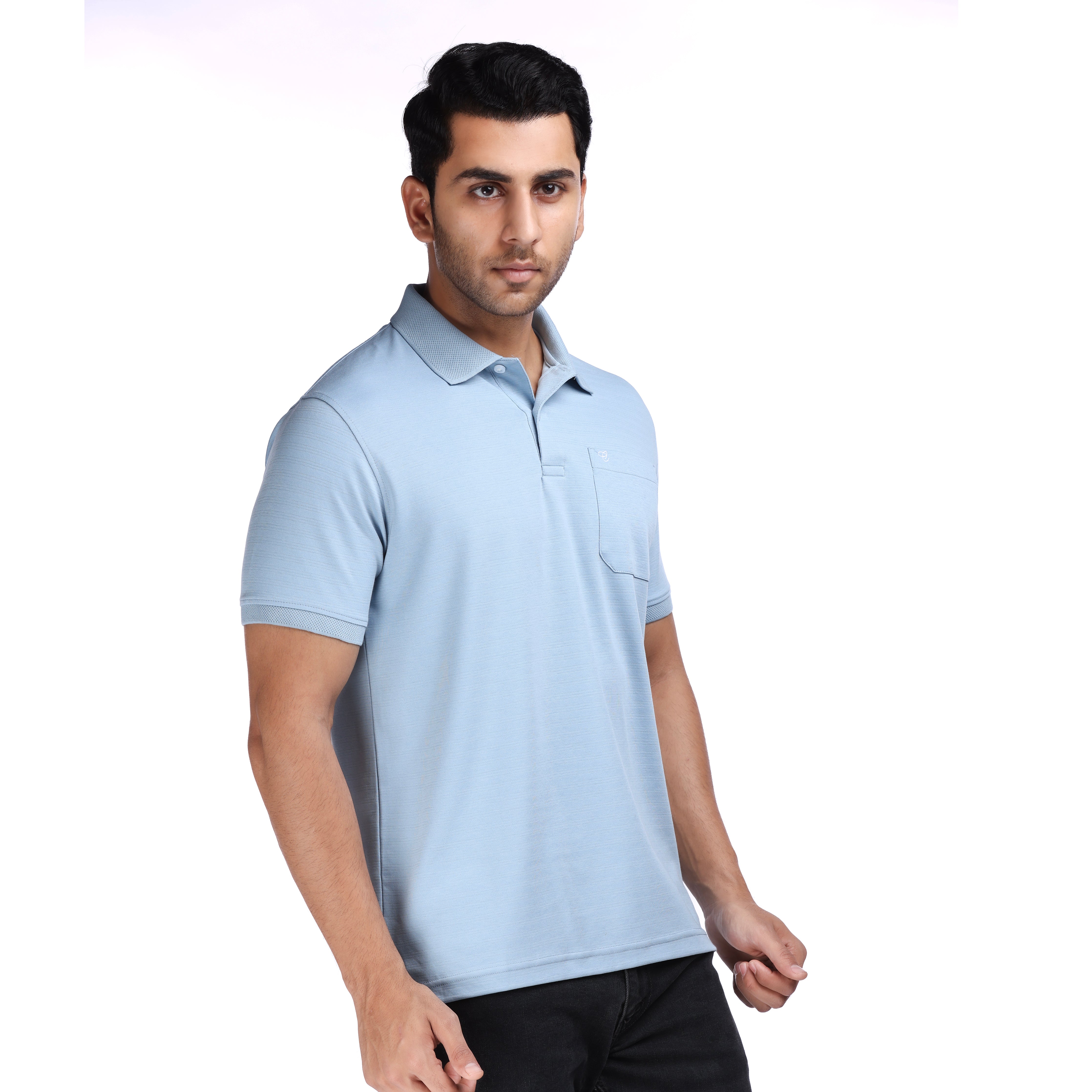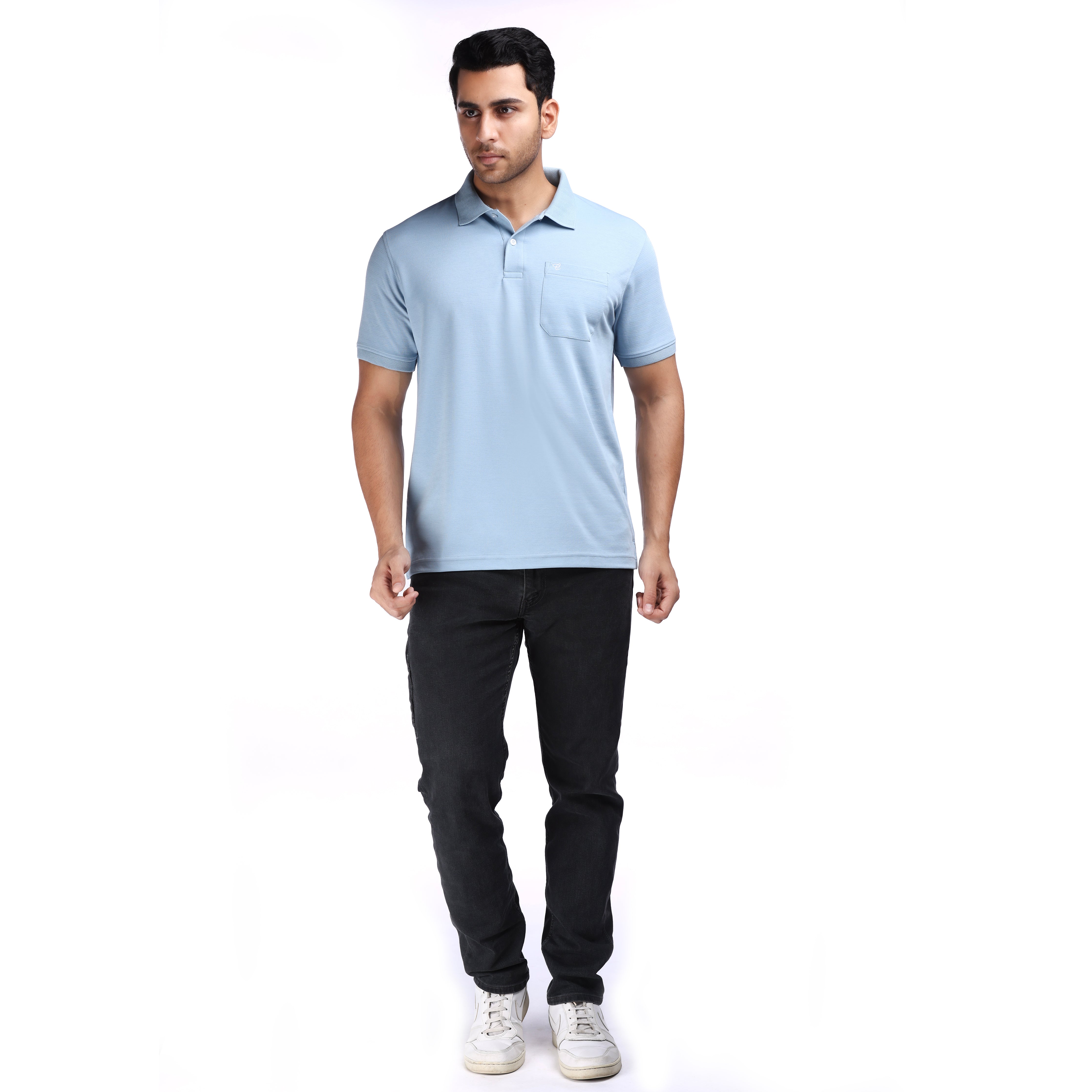The Designer Blue Polo combines timeless sophistication with everyday versatility. Crafted from premium cotton-dominated fabric, this regular-fit shirt features a structured weave that maintains its shape throughout the day. The designer collar adds refined detail, while the chest pocket provides practical functionality. Perfect for transitioning seamlessly between casual outings and smart-casual settings, this classic blue polo delivers polished appeal without compromising comfort. Ideal for those who appreciate quality tailoring and enduring style.