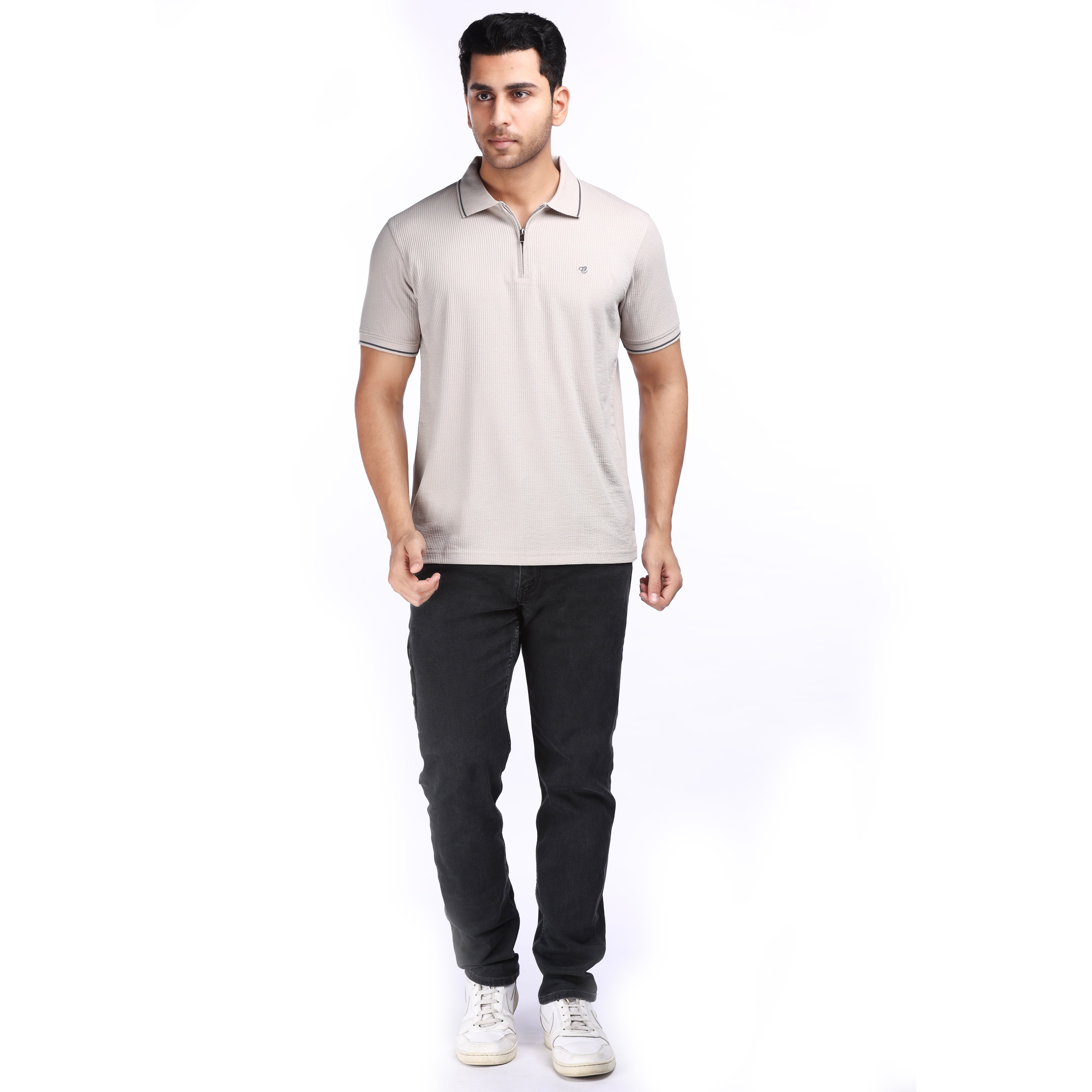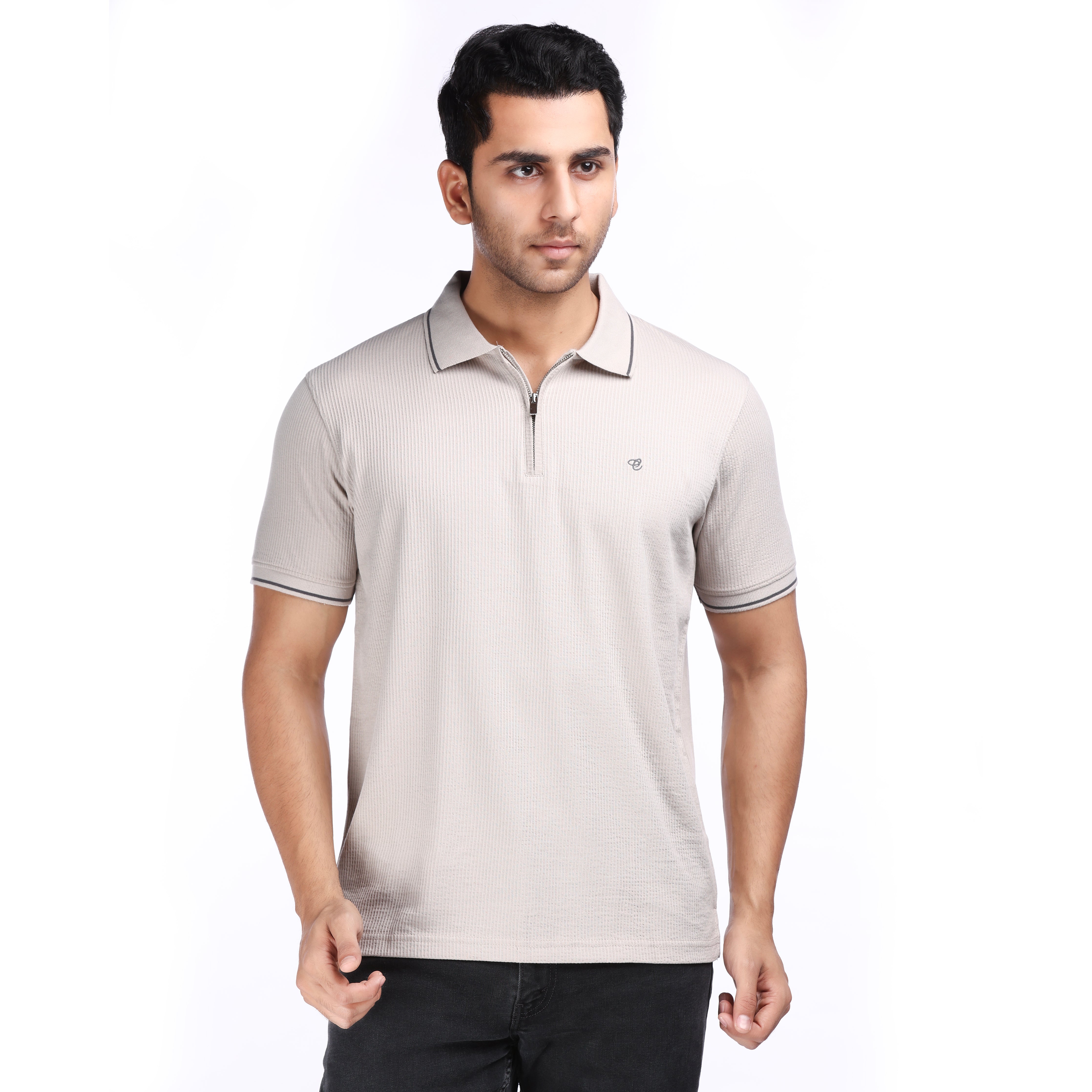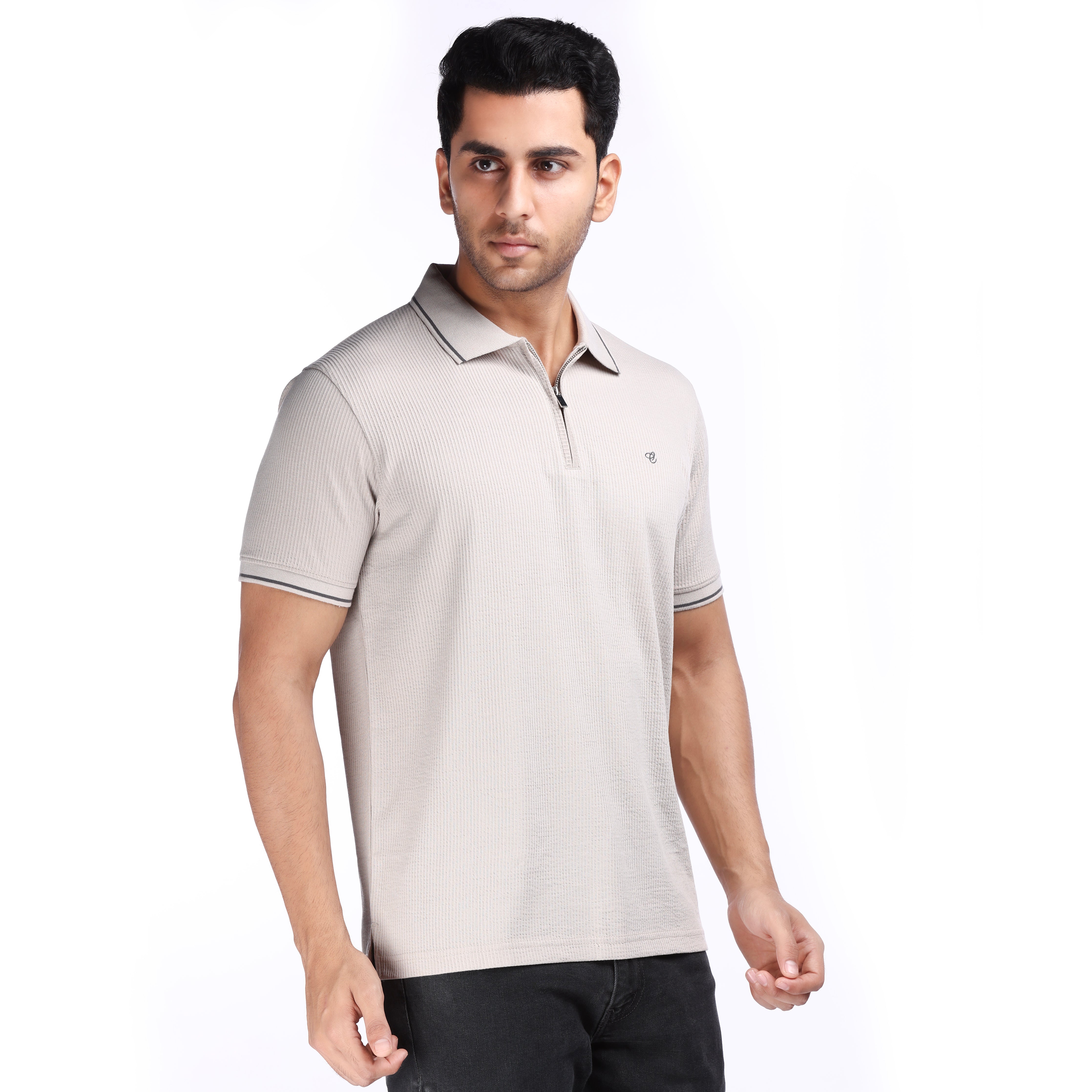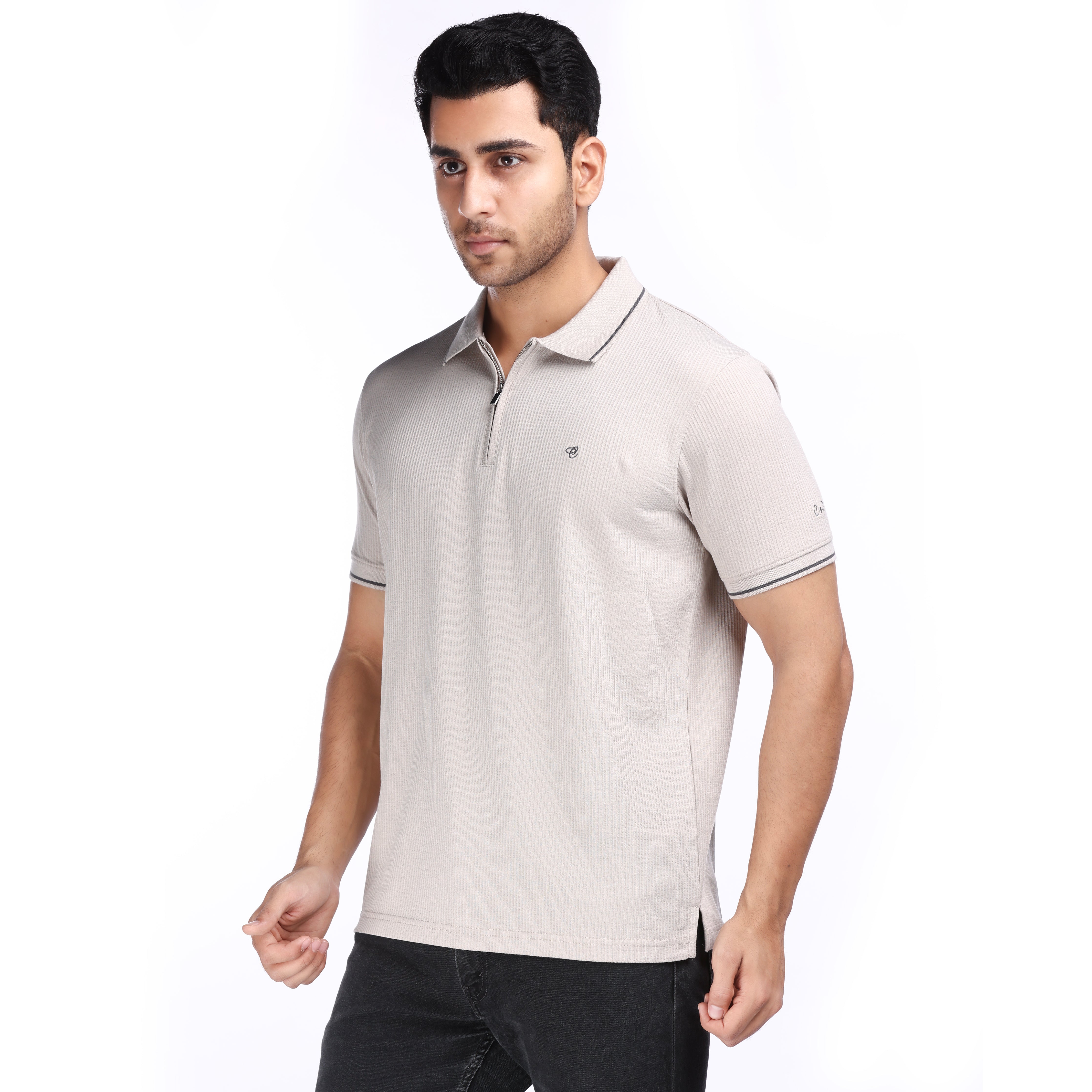 Elevate your everyday wardrobe with this versatile cream polo that seamlessly transitions from casual to formal settings. Crafted from a cotton-dominated blend with subtle stretch, the structured fabric maintains its shape throughout the day while providing comfortable movement. The distinctive dual-tone collar adds a refined design element, while the short sleeves keep you cool and collected. The functional zip neckline offers adjustable styling options, making this regular-fit essential perfect for layering or wearing standalone. Whether paired with jeans or tailored trousers, this piece delivers understated sophistication with practical comfort.
