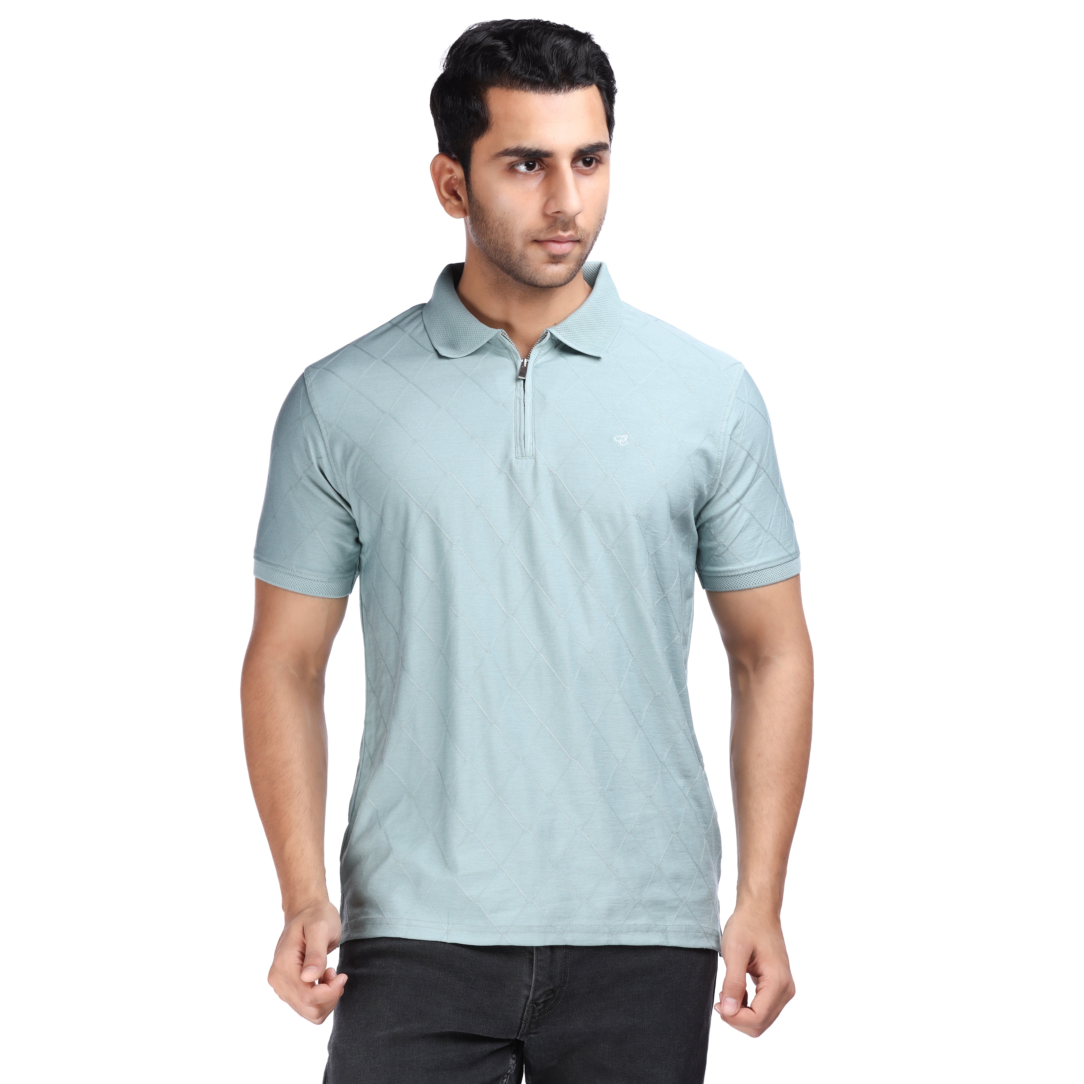This men's zipped polo in blue combines a cotton-dominated, structured designer fabric for durability and comfort. Its regular fit and short sleeves make it ideal for casual, daily wear, while the minimal design ensures versatile styling. The zipper adds a modern touch without compromising its classic appeal.