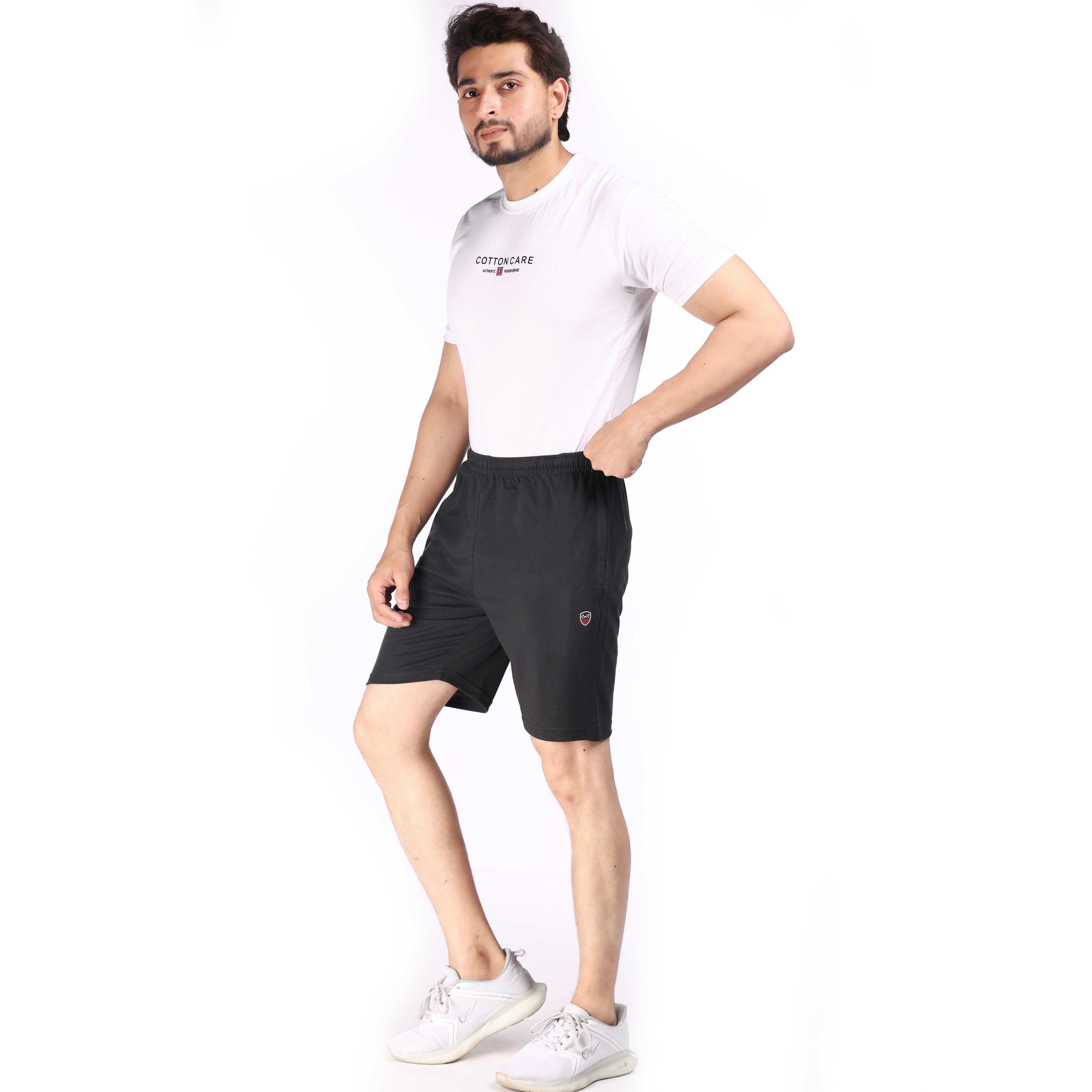 Designed for men seeking versatility, these dark grey regular fit shorts blend comfort and durability. Crafted primarily from cotton, they are ideal for daily wear, nightwear, and sports activities, offering breathability and ease of movement. Their sturdy construction ensures lasting use while maintaining a comfortable fit, making them a reliable wardrobe staple for various occasions.