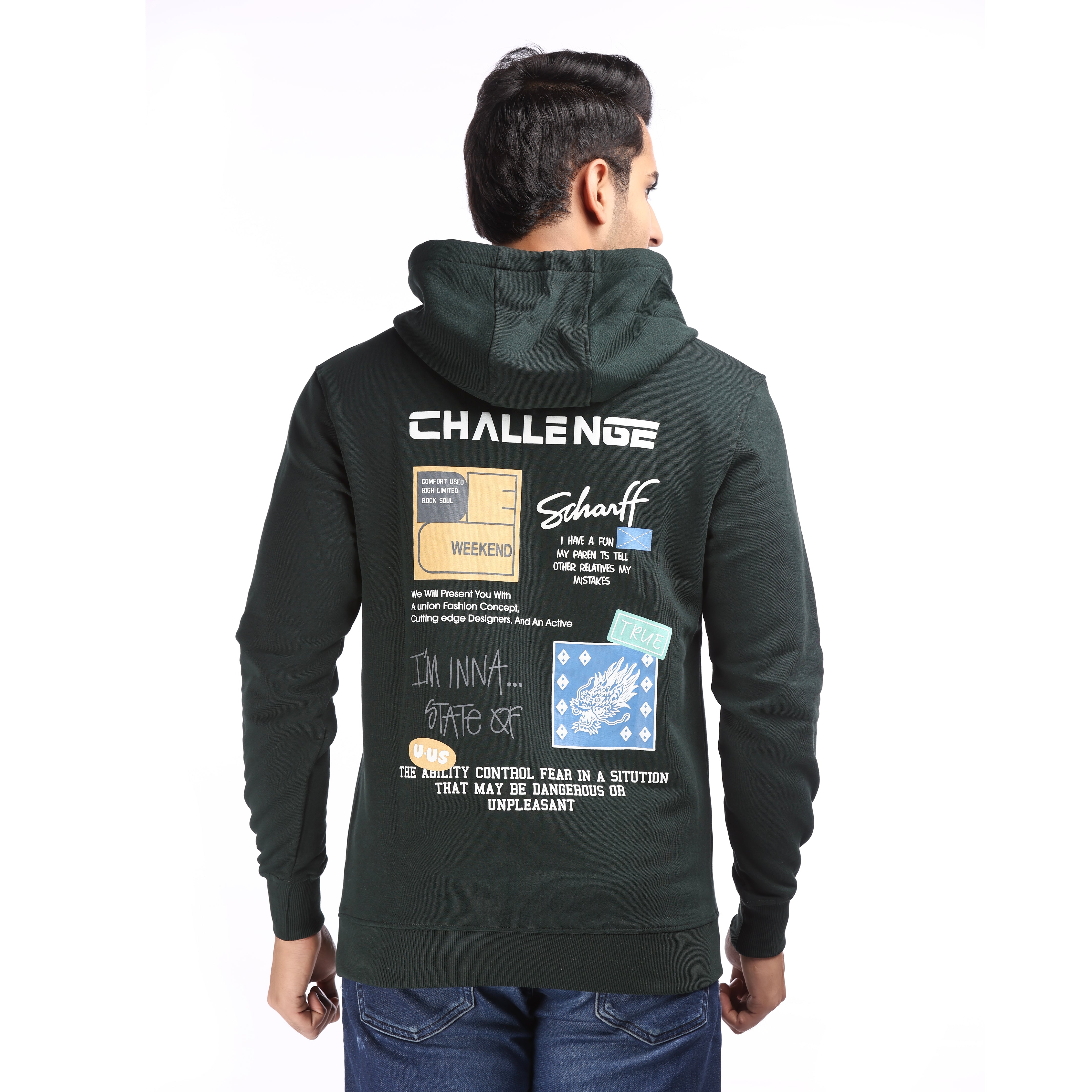 This olive-colored hoodie combines premium quality with a relaxed fit, ensuring comfort and style for daily wear. Crafted from a high GSM, cotton-dominated fabric, it offers durability and a soft touch ideal for outdoor activities and casual use. The distinct graphic printing on the back adds an urban edge, making it a versatile choice for those seeking both functionality and fashion.