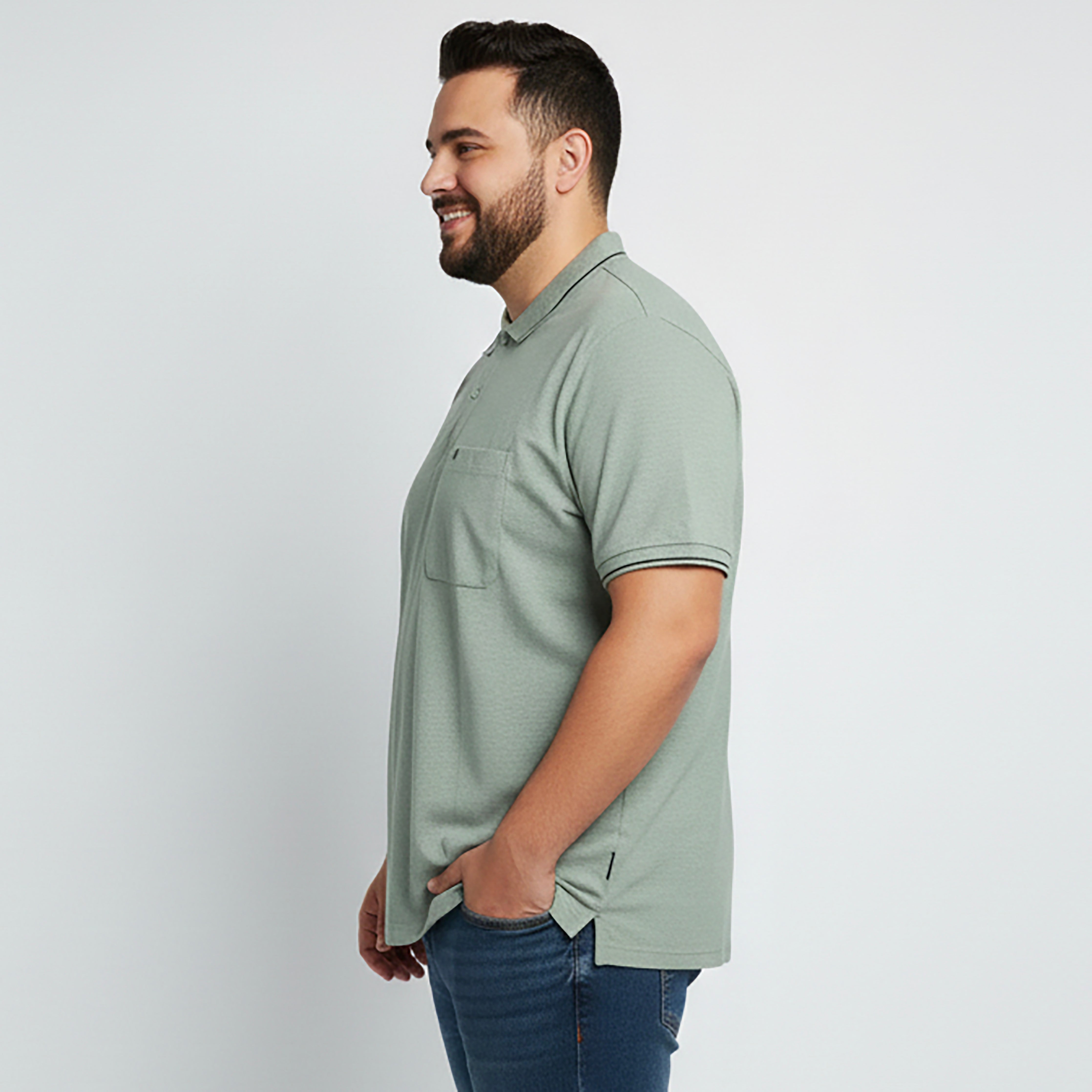 Elevate your everyday wardrobe with this expertly crafted plus-size polo tee, designed for the modern man who values both style and comfort. Tailored in a sophisticated royal pastel green, this versatile piece features a functional chest pocket and a relaxed fit that accommodates larger frames seamlessly. The cotton-dominated fabric blend delivers exceptional breathability, keeping you cool and comfortable throughout the day, while the subtle stretch ensures unrestricted movement for all-day wear. Perfect for casual outings, work environments, or relaxed social gatherings, this polo combines timeless appeal with practical functionality. The quality construction and thoughtful design make it an essential addition to any man's casual collection.